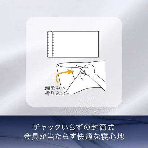 まくらより余る長い部分は内側に折り込むと、まくらに合わせたサイズ調整が可能となり、 見た目もきれいにセットできます。