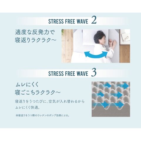 波形の凹凸ウレタン構造が背中・腰の体圧を分散しバランスのよい寝姿勢に。
