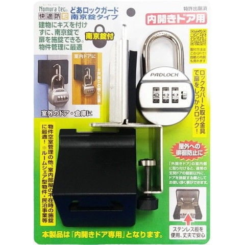 ノムラテック どあロックガード 南京錠タイプ 内開きドア用 南京錠付(ブラック) Nomura tec 快適防犯 N-1068(NOMURATEC) 【返品種別A】