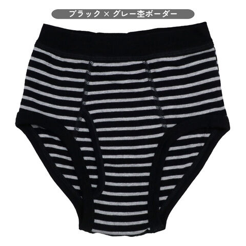 ◆青、グレー、黒をメインカラーとしたボーダー柄の前開きタイプブリーフです。
