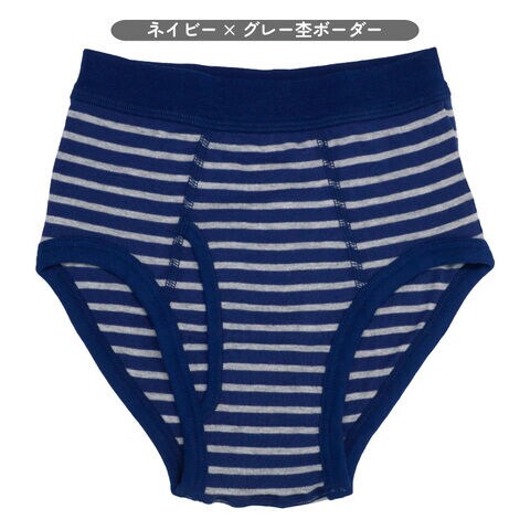 ◆青、グレー、黒をメインカラーとしたボーダー柄の前開きタイプブリーフです。