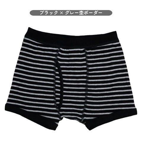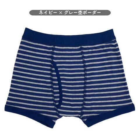 ◆青、グレー、黒をメインカラーとしたボーダー柄の前開きタイプボクサーです。