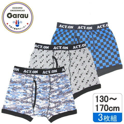 ガロー/GARAU 【綿100%】キッズ・ジュニア ボクサーパンツ 3枚組セット(マルチカラー・サイズ:140cm) 4820094(140cm) 【返品種別B】