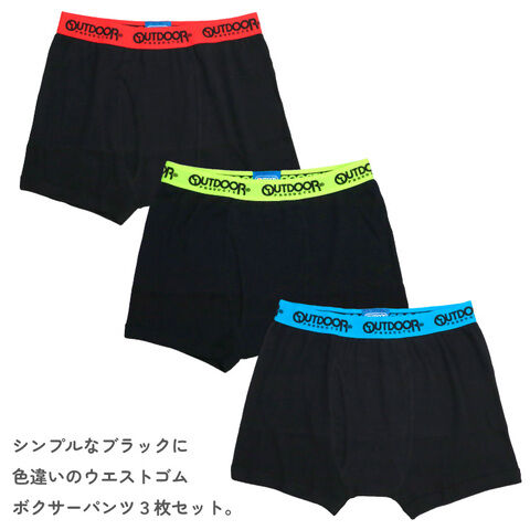 OUTDOOR PRODUCTS ジュニア ボクサーパンツ 3枚組セット(無地/マルチカラー・サイズ:150cm) アウトドアプロダクツ 4823195(150cm) 【返品種別B】