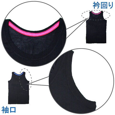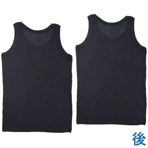 ◆後衿ぐりにカラーテープ付きで黒無地のシンプルなデザインのタンクトップ、2枚セット。