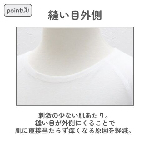 縫い目が外側にくることで、肌に直接当たらず、痒くなる原因を軽減。