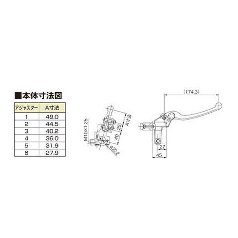 ※ご使用のキャリパーとの組み合わせによっては必要ブレーキ液圧が発生する前にレバーがグリップに当たり使用できないレバーアジャスター位置があります。