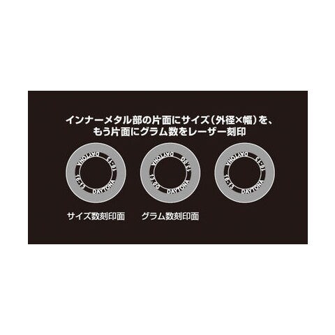 ◆インナーメタル部の片面に商品サイズ(外径×幅)をもう片面に商品グラム数をレーザー刻印しました