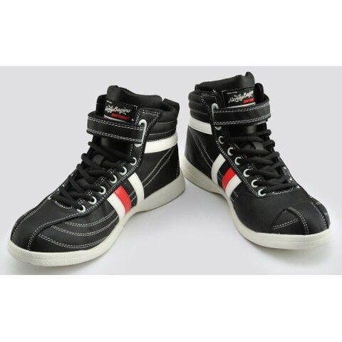 ◆面ファスナーベルト付きで脱ぎ履きしやすい、ハイカットスニーカータイプのライディングシューズ