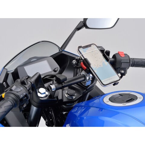 スマートフォンやナビゲーション、USB電源など、電子機器の取り付け場所に困るセパレートハンドル車用のマルチバーホルダー。