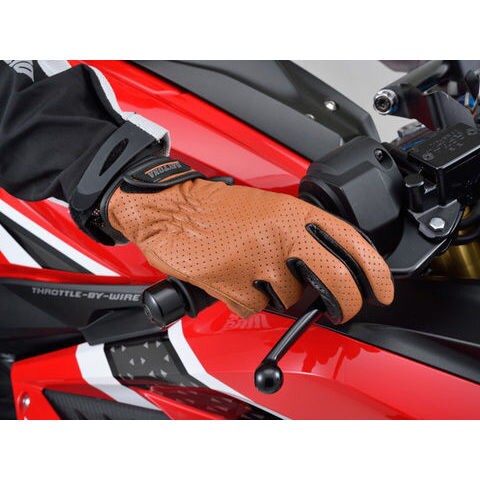 ◆やわらかい牛革を手にフィットする立体裁断で仕立てたライディンググローブ