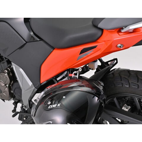 ヘルメットホルダーが純正採用されていない車両にボルトオンでヘルメットホルダーが取付可能。
