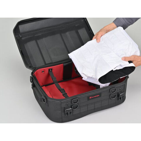 バッグ底面のノンスリップシートは、シートの小さなスーパースポーツでもバッグの前ズレを防ぎ、
