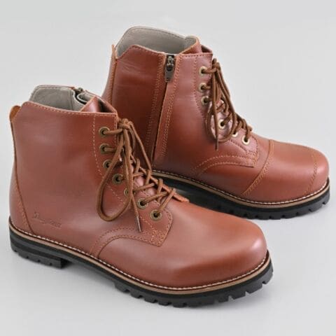 ◆オーソドックスな防水仕様のレースアップショートブーツ。