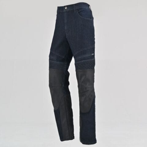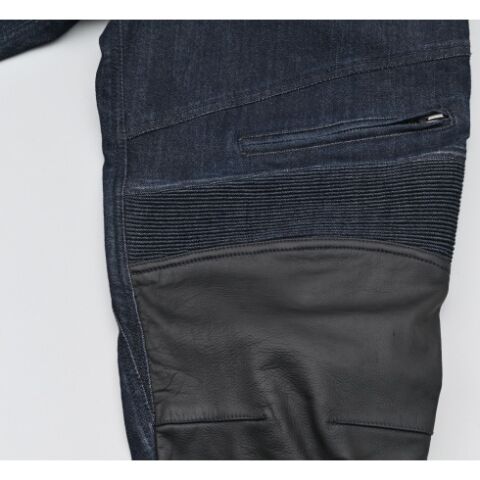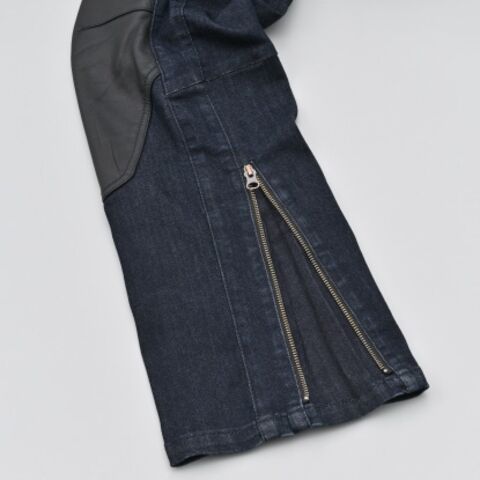 ◆レザー補強がアクセントのバイク専用ヒートガードデニム。