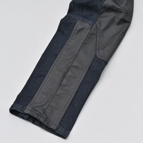 ストレッチ性に優れたデニム素材をベースに、随所をレザー補強。