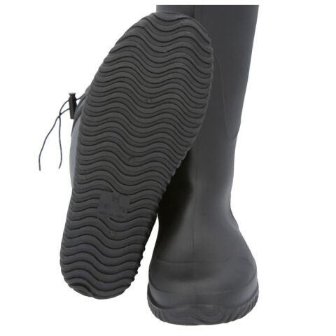◆履き口部分には、フェイクレザーの幌を合わせて、ドローコードでキュッと絞ることが可能。雨が浸入しにくい構造で足元をしっかりガード!