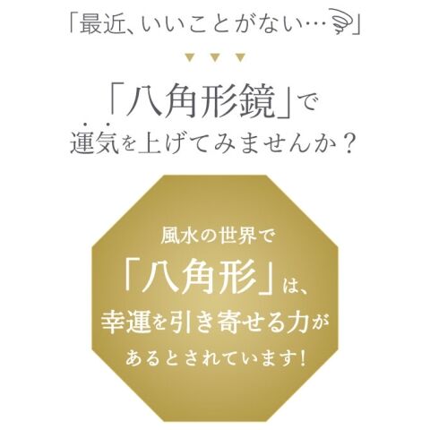 ◆風水で八方位と呼ばれ、全方位から幸せを引き入れるという伝統的な開運法を取り入れた「Octam 八角形ウォールミラーLサイズ」。
