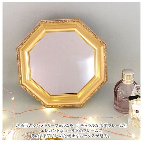 風水の世界では、四方八方からエネルギーを引き寄せ、悪い気を跳ね返す力があるとされている「八角形」に仕上げたお洒落なミラー。
