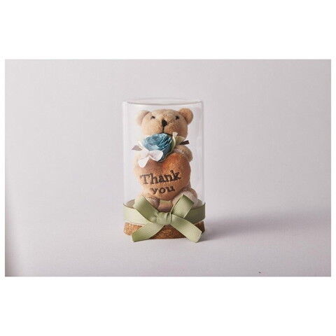 くまのぬいぐるみとプリザーブドフラワーが一緒コルク瓶に入ってそのまま飾れる◎