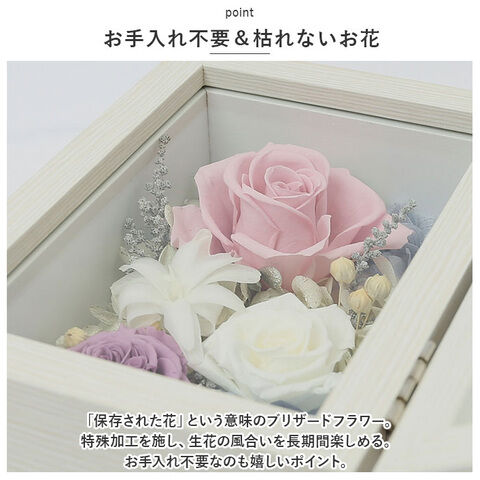 - 素材:プリザーブドフラワー、MDF