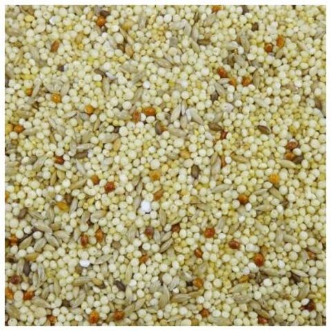 ■原材料:アワ(皮むき)、キビ(皮むき)、ヒエ(皮むき)、カナリアシード(皮付き)、カナリアシード(皮むき)、赤キビ(皮付き)、ボレー粉(カキガラ)