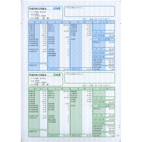 「給料王14以降の製品」に対応した、給与・賞与明細書