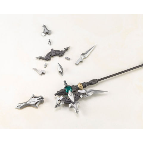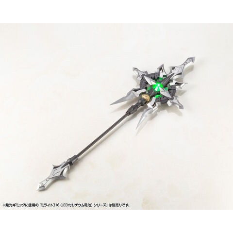 組み換えによって大型の魔法の杖から槍、鎌、ウイングユニットといった様々なスタイルへと変更可能な武器です。 本体基部に別売りのミライトシリーズ(LED付リチウム電池)を組み込むことができ、本体中央のコアパーツを発光させることが可能です。