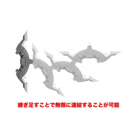 ※ミライト316、ミライト327シリーズのみ対応。 魔法陣型エフェクトパーツはクリアグリーンで成形、大、中、小大きさ、形状の違うタイプのものが付属し、それぞれ中央の3mmジョイントにより組み換えが可能です。 ロッドのサークル形状部分は付属の汎用3mmジョイントにより無限連結することが可能であり、ツノやブレード、装甲から大型のウイングパーツといった単体でも複数でも様々なカスタマイズをお楽しみいただけるパーツとなっています。