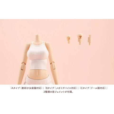 胴体部分の成型色は「創彩少女庭園」で多く使用されているスキンカラーAを採用しており、「アルカナディア」や「フレームアームズ・ガール」「メガミデバイス」などと組み合わせて遊ぶことが可能です。