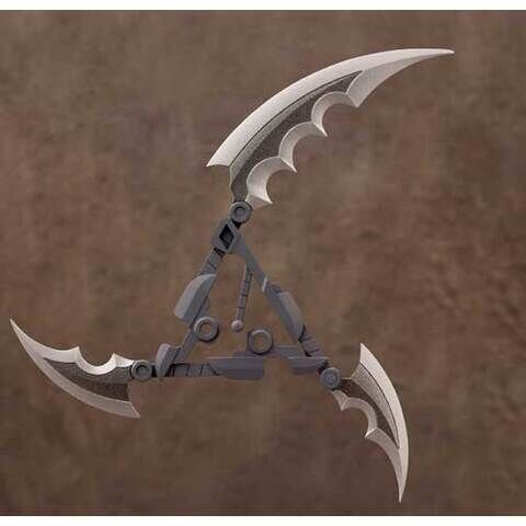 基本形態「デスサイズモード」(約230mmの大鎌)からマチェットや複数のブレードへと分解が可能。