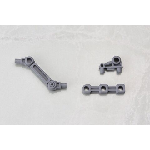 ベースユニットAパーツ×3 ベースユニットBパーツ×3 ベースユニット用3mm関節パーツ×6 ヒンジアーム×3 アームユニット×3 3穴ジョイント×3 シリンダージョイント×3 3mmジョイント×3 変換用アタッチメント10種×1
