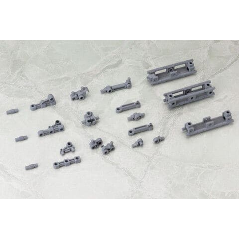 本体は可動・収納・拡張をテーマにした自由度の高いジョイントパーツで構成され、各部は単独での使用にも便利な汎用性の高いデザインです。 ベースユニットの形状は「A」「B」2種類のパーツから自由に組み合わせ、用途に合わせて変更が可能です。 ヒンジアームはベースユニットのシャフト部(3mm径)に取り付ける事も出来ます。 各部のジョイント部は3mm径で統一され、パーツ同士を自由に組み合わせる事が可能です。 アームユニットは中央部を外して短い状態でも使用出来ます。 3.0mmと3.3mmを変換する為のアタッチメントパーツは、「フレームアームズ・ガール」やその他の商品とも組み合わせて使用する事が可能です。