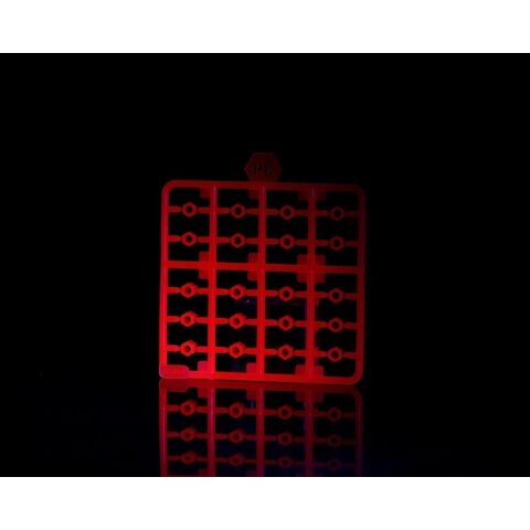 ■ヘキサギア世界の二大勢力の一方、MSGヴァリアントフォースをイメージしたレッドで成型されたヘキサグラムは、半クリアー成型とする事でガンメタルのフレームをはじめとした暗色の部品に装填してもしっかりとした発色を保ちます。