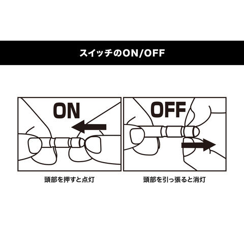 ■頭部LEDを押し込むことで点灯、引っ張ることで消灯します。
