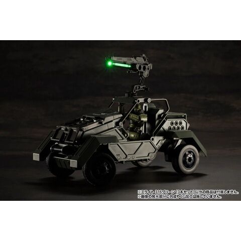 ■「ヘキサギア ブロックベース01 DXヘッドクォーター(別売り)」に付属する「セントリーガン」は、ミライト316を無改造で組み込むことで、クリアーパーツの砲身を発光させることができる仕様です。