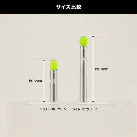 ■「327グリーン」は全長約27mmの容量20mAh(電池寿命は約30時間以上)。