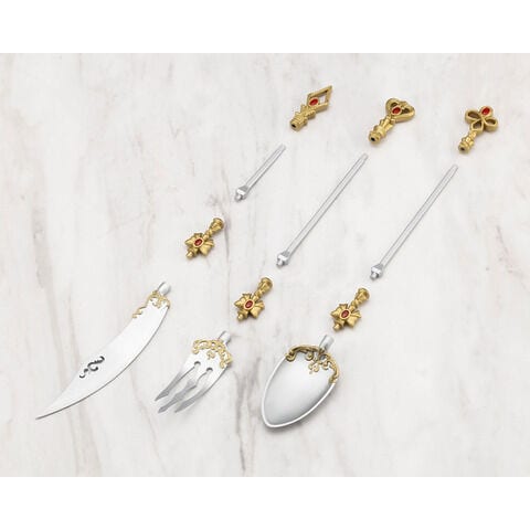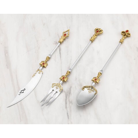 定番のスプーン・フォーク・ナイフの3種がセットになっており、ファンタジックで可愛らしいキャラクター演出に最適です。