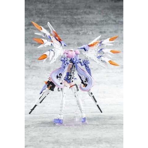 クリアーパーツをあしらった巨大なウイングやアンプル弾を発射する医療系ライフルなど勇ましくも看護をイメージしたパーツが満載。 メガミシリーズ初の透明クリアー成型メガネが付属。 Block2素体対応のボンテージ風コスチュームやロングブーツなど、ファッション性の高いパーツが付属。 長いツインテールは、よりアクションさせやすい編み込みリングパーツに差し替えることができます。 雨間氏によって描き起こされた印刷塗装済みフェイスパーツが3種付属。 ピュアなプロポーションを楽しめる「素体モード」や様々なパーツを取り付けた「武装モード」など、組み替えにより大きくシルエットを変えて楽しめます。 “マシニーカシリーズ”素体驚異の可動範囲で、武器構えポーズや座りポーズが自然にキマります。 多彩な武器パーツ、ジョイントパーツが付属。色々なコンバットシーンを想定して遊ぶことができます。 専用スタンドが付属。 各部に配置された3mm径のジョイントや頭部の互換性により既存『M.S.G』『フレームアームズ』『フレームアームズ・ガール』『ヘキサギア』『創彩少女庭園』『アルカナディア』『メガロマリア』シリーズ等と各部併用が可能。