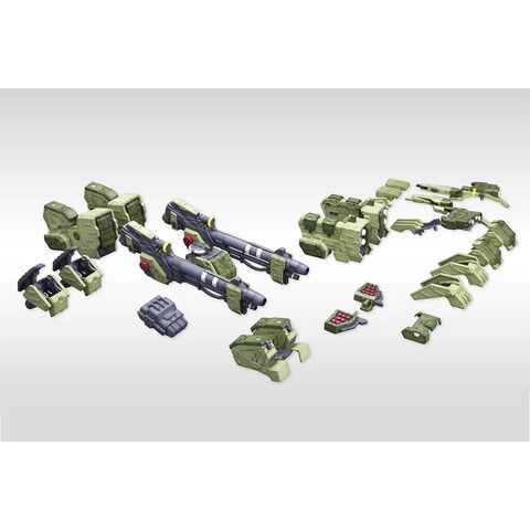 ツートンのグリーンカラーを纏った装甲はマルチカラーキットで再現され、組立てるだけで設定に近い姿に仕上がります。