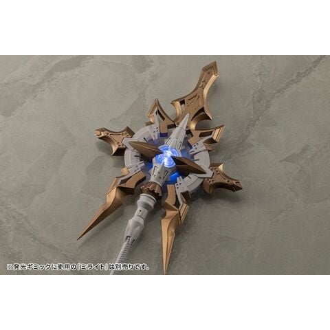 組み換えにより、槍や鎌、装甲など様々な武装形態に変化可能な『アルナイルロッド』は別売りのミライト(LED付リチウム電池)を組み込むことで中央基部のコアを発光させることが可能です。