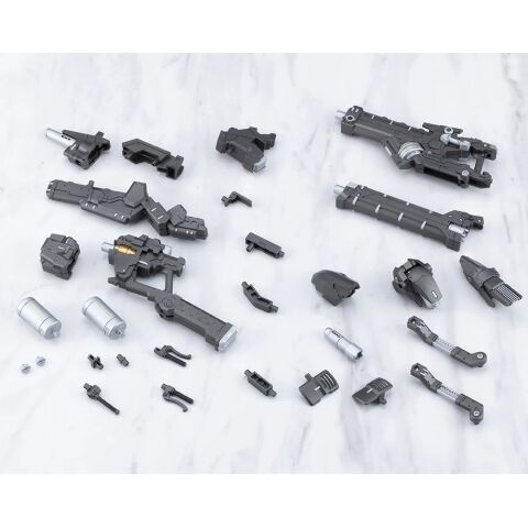 プラズマライフルは新規に強化マズル、大型コンデンサ、光学サイト、カートリッジを追加し、迫力ある大型ライフルへと再構築。 プラズマショットガンは新規にショットガンマズル、ショットガン機関部、カートリッジを追加し、重量感あるショットガンを再現。可動式ストックにより、手首干渉を軽減しポージングの自由度を確保。 プラズマミサイルは新規にミサイル機関部を追加し、ミサイルポッドを表現。可動可能なハッチにより、エネルギーミサイル発射状態を再現。 ライフル・ショットガンに付属するカートリッジは3mm接続で着脱可能。単体で改造ユニットとしても活用可能。 FAガール、メガミデバイスなどの美少女プラモデルが乗ることができるエアバイクに組み換え変形する事ができます。