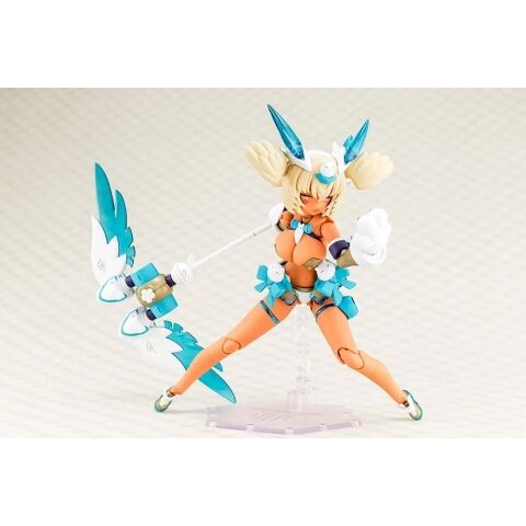 BLADE氏によって新たに描き起こされたフェイスパーツが3種付属。 腕のマークや各部差し色用のシールが付属。 ピュアなプロポーションを楽しめる「素体モード」や様々なパーツを取り付けた「武装モード」など、組み替えにより大きくシルエットを変えて楽しめます。 メインウェポンの「ゆうわくお姉さんウイング(ゴールドアウルフェザー)」は両腕や背中にセットして様々なアクションポーズを取らせることができます。 アーマーを身に着けた「武装モード」と、アーマーを脱いだ「素体モード」をパーツ差し替えで再現できます。 “マシニーカシリーズ”素体驚異の可動範囲で、武器構えポーズや座りポーズが自然にキマります。 多彩な武器パーツ、ジョイントパーツが付属。色々なコンバットシーンを想定して遊ぶことができます。 専用スタンドが付属。 各部に配置された3mm径のジョイントや頭部の互換性により既存『M.S.G』『フレームアームズ』『フレームアームズ・ガール』『ヘキサギア』『創彩少女庭園』『アルカナディア』『メガロマリア』シリーズ等と各部併用が可能。