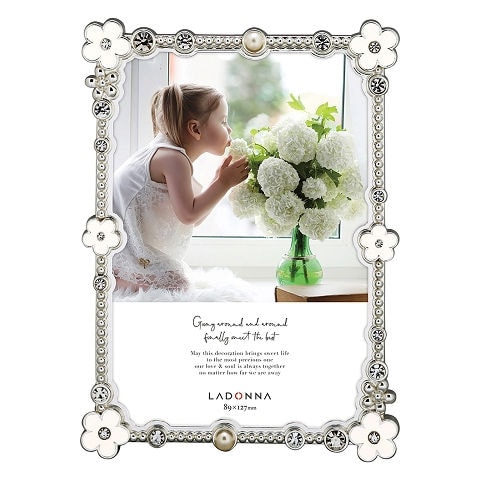 ◆白く可憐な花とパール。純真無垢な可愛さを感じさせるフレームです。
