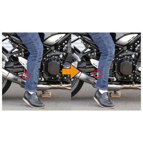 ◆Z900RSで足を着く際、純正ステップが足に当たる場合などに、ステップの位置を移動させ足への当たりを軽減させます。