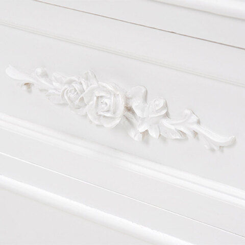 ◆コロンとした脚と、繊細な浮き彫りが上品なチェスト。