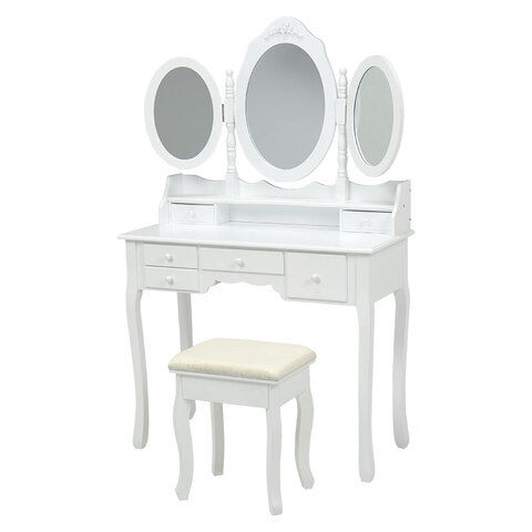 ◆楕円形の三面鏡と脚の曲線が上品なドレッサーセット。