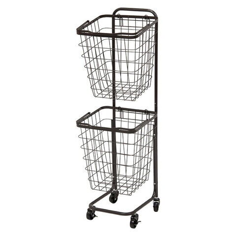 HAGIHARA(萩原) ランドリーラック(ダークブラウン・幅33×奥行39×高さ108cm)角型2段タイプ KR-3970DBR 【返品種別A】