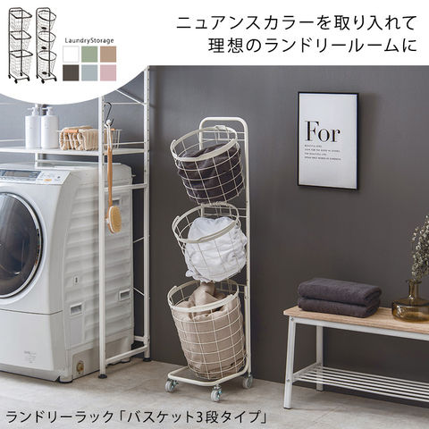 3つのバスケットに洗濯物を分別しながら溜めることで、