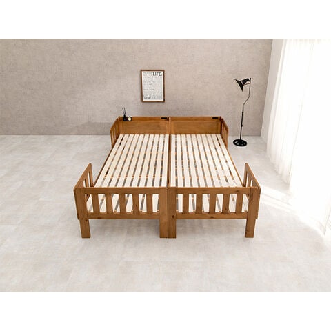 ◆1台だとベッドガード付きの1人用ベッド、2台を連結すると家族で広々使える大きなキングサイズベッドに。